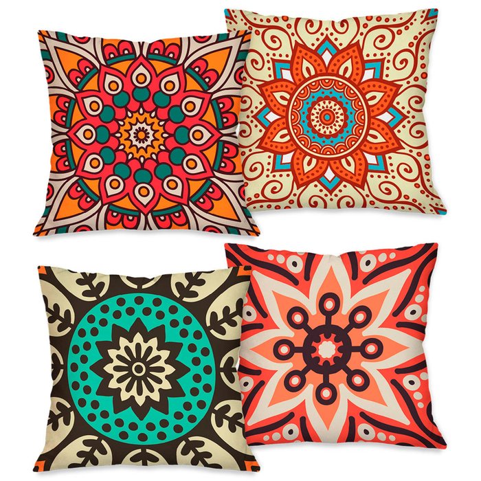 Kit com 4 Capas para Almofadas Decorativas Mandala Colorida