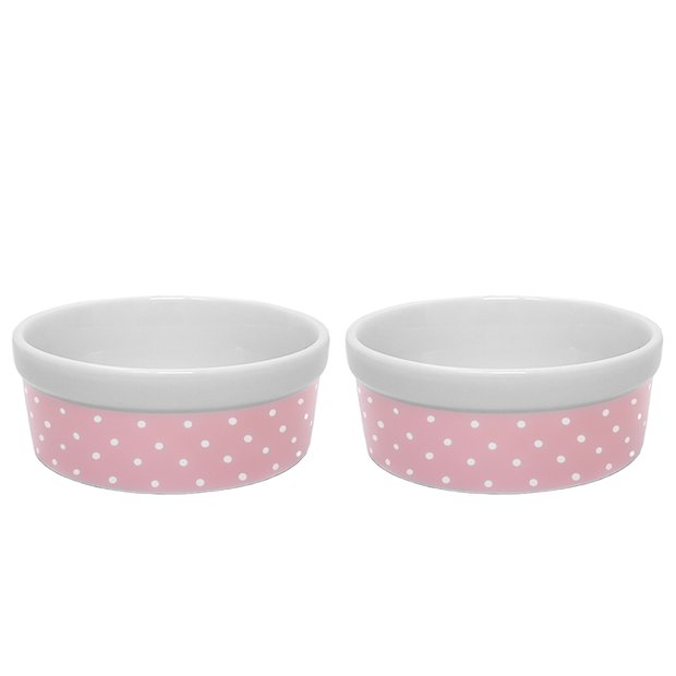 Kit Comedouro e Bebedouro de Porcelana 300ml Rosa Bolinhas Rosa