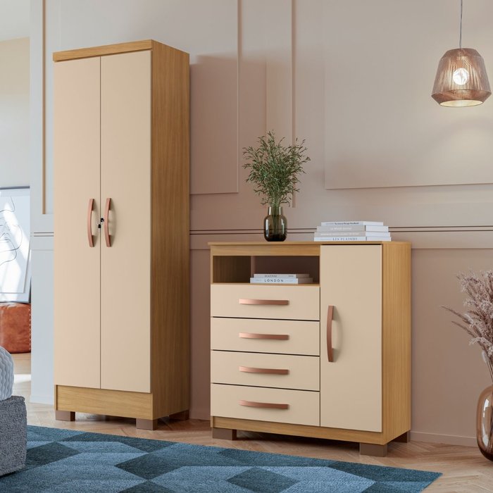 Cômoda Sapateira com 4 Gavetas + Armário Multiuso 2 Portas – Organização Completa em um Só Conjunto
