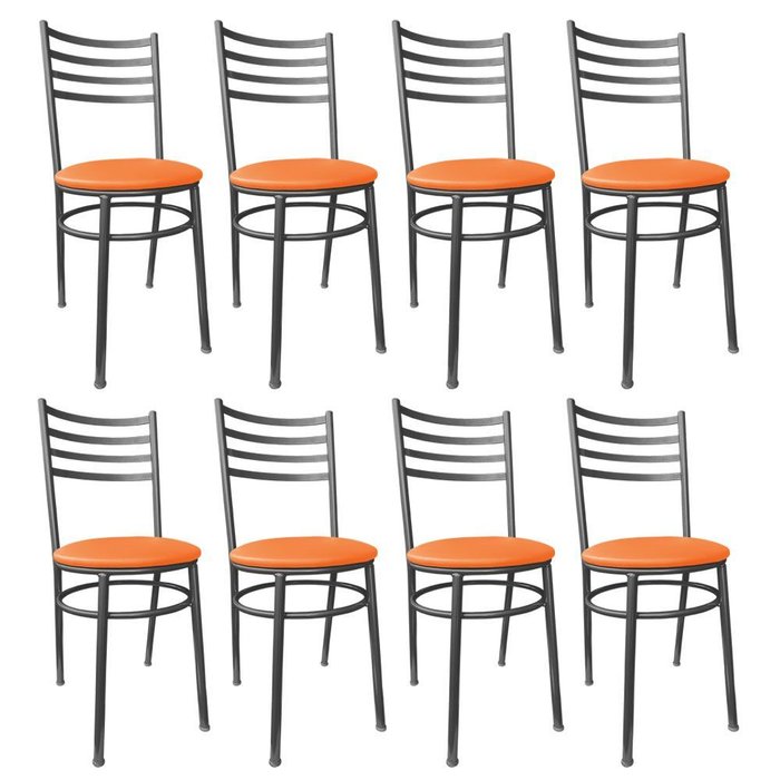 Kit Conjunto 8 Cadeiras de Jantar para Cozinha Mesa Bar Lanchonete Restaurante Estofada Laranja Laranja