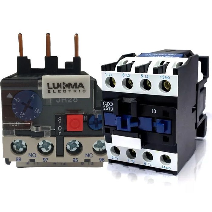 Um kit contator e relé, geralmente, inclui um contator e um relé, que podem ser relés térmicos ou outros tipos de relé. O contator é um interruptor eletromagnético que comuta circuitos de alta potência, enquanto o relé é um interruptor controlado eletricamente para controlar cargas menores