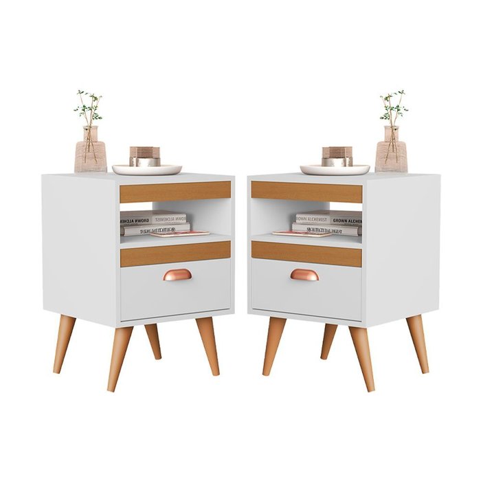 Kit Duas Mesas Cabeceira Quarto Sal Branco Ypê