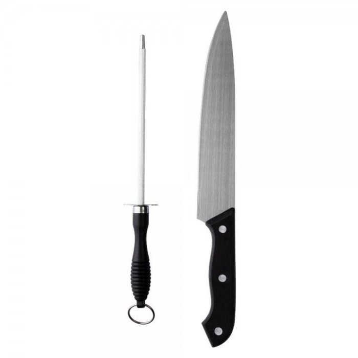 Kit Faca 12" + Chaira 12" - Clink Metálico - Cabo Preto
