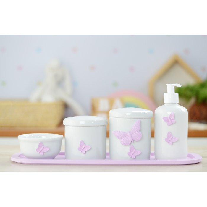 Kit Higiene Bebê Porcelana Borboleta Menina Lilás Quarto Bancada Banho Cuidados Recém Nascido K110 Lilás