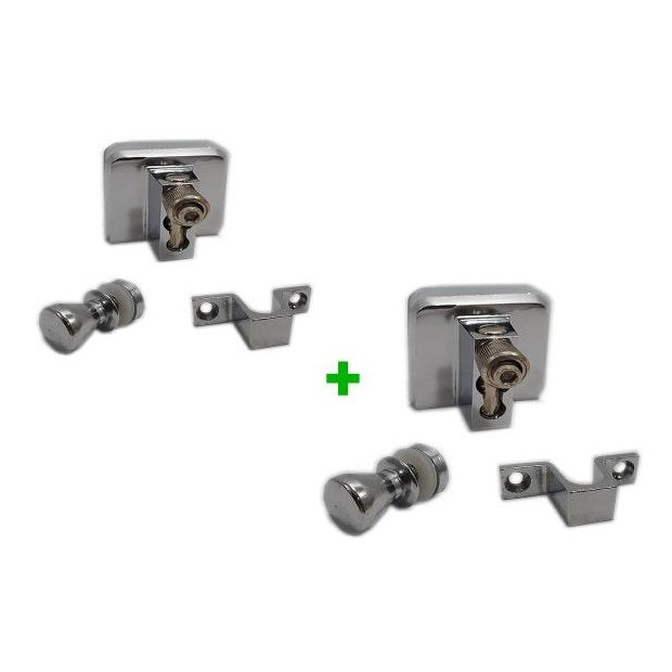 Kit para instalação de janela de quatro folhas de correr com duas fixas 2 móveis para vidro temperado. (Blindex). Cor: Cromado Contém: 1335- 2x Trincos 1629J- 2x Puxadores 1038B- 2x Contra Trincos Acessório ideal: Janelas OBS.: TODOS os detalhes técnicos estão descrito na segunda imagem.