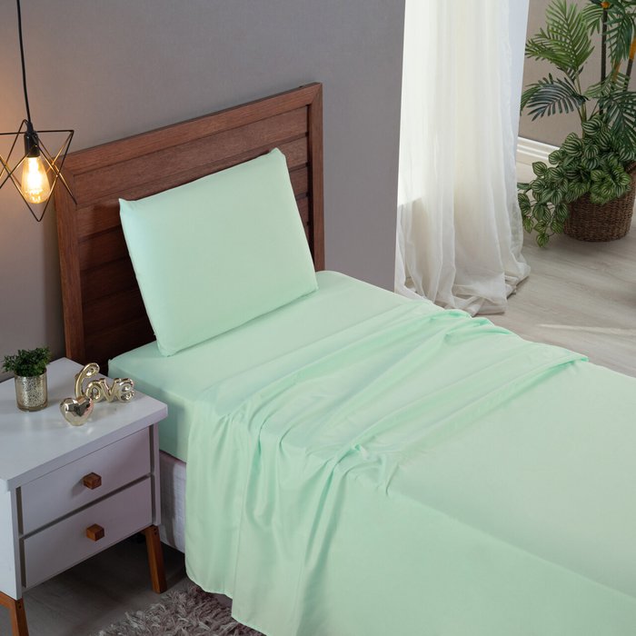 Kit Jogo de Cama Lençol Solteiro 300 Fios Algodão com Virol 3 Peças:verde Bebe VERDE BEBE