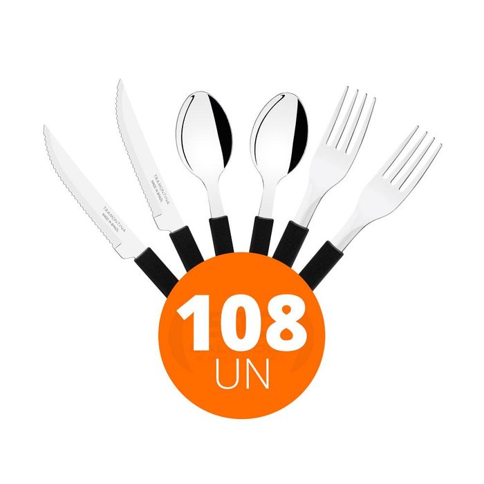 KIT - Jogo de Facas, Garfos e Colheres Leme 108 Peças em Aço Inox Cabo Preto PBAG - Tramontina
