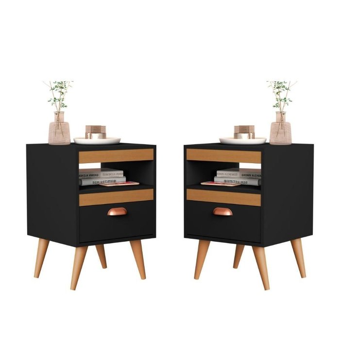 Kit de 2 Mesas de Cabeceira é um móvel coringa, capaz de deixar o ambiente mais harmônico, além de ser muito útil, garantindo que seus objetos pessoais estejam sempre à mão. Contém 1 gaveta e 1 nicho. Estrutura elaborada em MDP. Medidas do produto: Altura: 51 cm Largura: 34 cm Profundidade: 31 cm Informações do produto: Cor: Preto/Ype Possui Gavetas: Sim (1) Possui Nichos: Sim (1) Pés: Sim (4) Material: MDP Itens inclusos: 02 Mesas de Cabeceira. Kit completo para montagem, manual detalhado de instruções para montagem. Garantia: 3 meses contra defeito de fabricação. Informações complementares: - Fotos meramente ilustrativas do produto no ambiente. - Os objetos que ambientam as fotos não acompanham o produto; - Verificar descrição e tamanho do produto antes da compra. - Avaliar a mercadoria no ato do recebimento e recusar em caso de divergência ou avarias. - Mantenha as informações de contato e endereço de entrega atualizados para entrarmos em contato caso necessário. - Limpar com flanela ou pano macio seco, não utilizar produtos abrasivos, desengordurantes, álcool ou solvente. Não expor o produto diretamente à luz solar e à umidade. * Sugerimos a contratação de um montador profissional para a montagem do produto. Não nos responsabilizamos por avarias causadas no ato da montagem. * Não nos responsabilizamos pela montagem e desmontagem do produto no ato da entrega e devolução, assim como os custos gerados nestas situações. * A transportadora entregará o produto no andar térreo do endereço de entrega. * Não nos responsabilizamos por subir escadas, corredores e elevadores ou transporte por guincho em apartamentos.