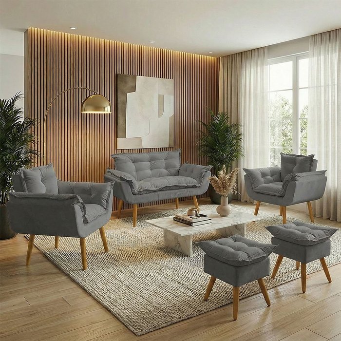 Transforme seu ambiente com o Kit Alice, composto por 1 namoradeira, 2 poltronas e 2 puff, combinando sofisticação, conforto e versatilidade. Com design elegante, adapta-se a diversos estilos de decoração, desde os mais modernos aos clássicos. Ideal para salas de estar, recepções, consultórios e escritórios, esse conjunto harmoniza perfeitamente com diferentes paletas de cores e elementos decorativos. Além da estética refinada, proporciona um ambiente acolhedor e convidativo, valorizando cada detalhe do seu espaço.