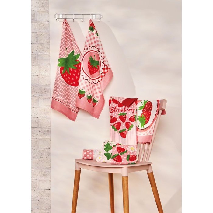 Os Kits de panos de copa Piquenique apresentam o jeito Lepper irreverente de ser, com um tecido felpudo que possui ótima absorção e que se torna mais macio e absorvente a cada lavagem e não perde a intensidade das cores. Com opções sortidas de estampas que trazem um toque especial na decoração, além de muita praticidade para tornar o dia a dia mais leve. Nessa estampa Piquenique temos o morango como protagonista, sendo delicioso e prático para ser levado em um piquenique divertido com a família.