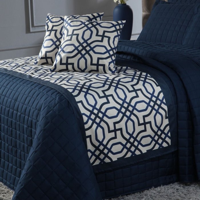 Kit Peseira Cama com Capa de Almofada Decoração Quarto 3 Peças azul