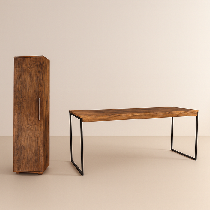 Transforme seu escritório em um ambiente moderno, organizado e funcional com este kit completo que une a resistência da Mesa Pé de Ferro à praticidade do Gaveteiro Berlin.
