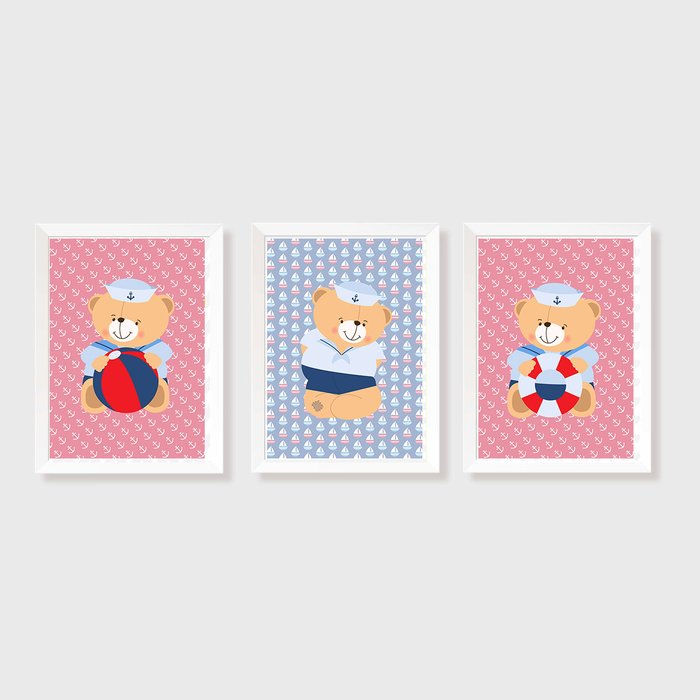Kit Três Quadros Ursos Marinheiros
