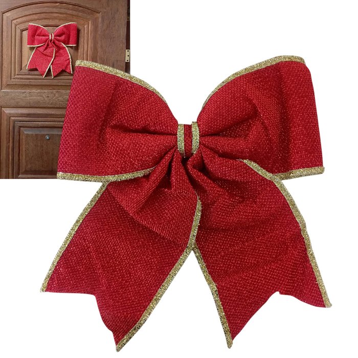 Laço de Natal Grande Natalino Enfeite Decoraçao Arvore Janela Porta Guirlanda Evento Festa Ornamenta Vermelho e Dourado