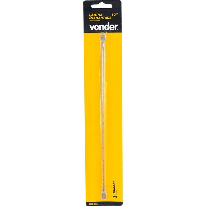 Marca:Vonder Conteúdo da Embalagem:1 Lâmina diamantada Aplicações e dicas de uso:Indicada para cortar cerâmicas, tijolos, telhas e similares. Não indicado o uso em porcelanatos. Destaques e diferenciais:Possui estrutura adaptável ao arco de serra Características Técnicas:Comprimento da lâmina diamantada: 12" - 304 mm Diâmetro da lâmina diamantada: 3,0 mm Garantia - E (CDC): Garantia legal: 90 dias