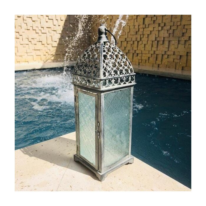 Lanterna Marroquina Decorativa Metal Cinza 42x13cm Cinza