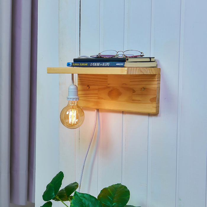 Luminária Arandela Pendente com Mesa Lateral de Madeira 2 em 1 - Casa 67