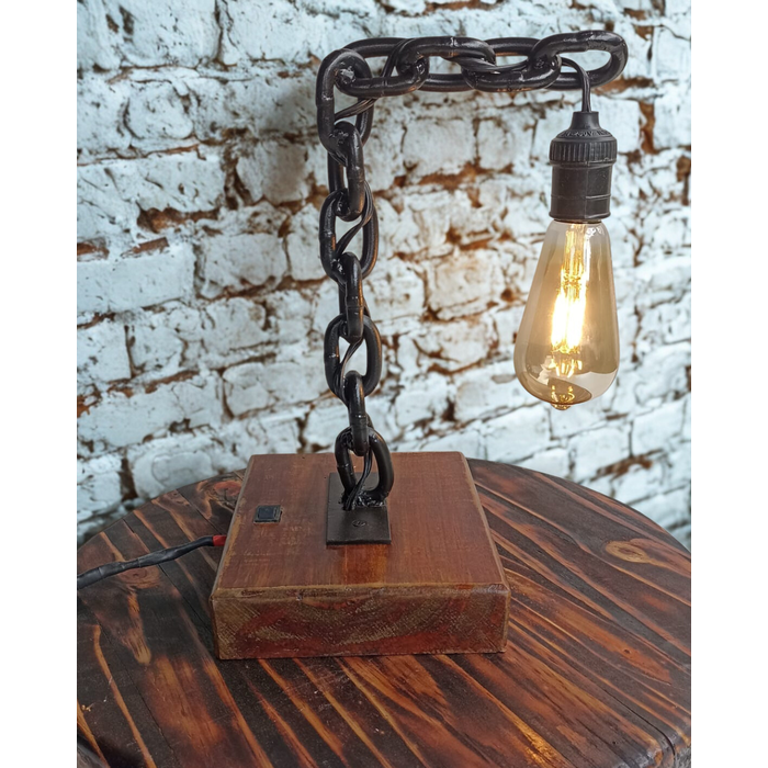 Essa luminária única é feita de correntes robustas, criando um look industrial e charmoso.