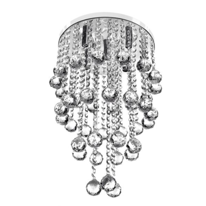 Lustre De Cristal, Para Sala/Hall ,Com 30cm de Alt, Base Espelhada 30Cm de Diâmetro, Esferas de Cris