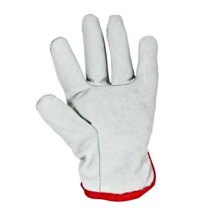 Descrição: luva de segurança confeccionada em couro bovino curtido ao cromo, com reforço entre polegar e indicador, com ou sem reforço palmar interno. Tipo petroleira com elástico embutido no dorso. Acabamento em viés. Costurada com linha de nylon.