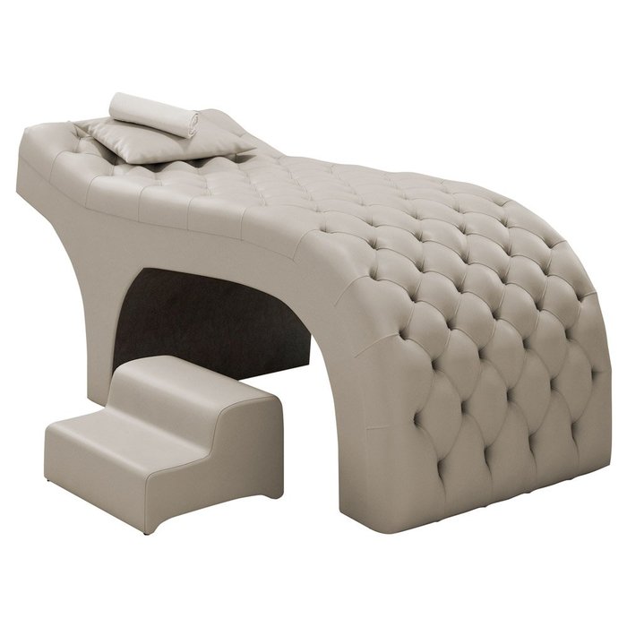 Maca Salão de Beleza Para Esteticista Charme e Puff Escada Estofada 190x60cm Suede - Desk Design Beg Bege