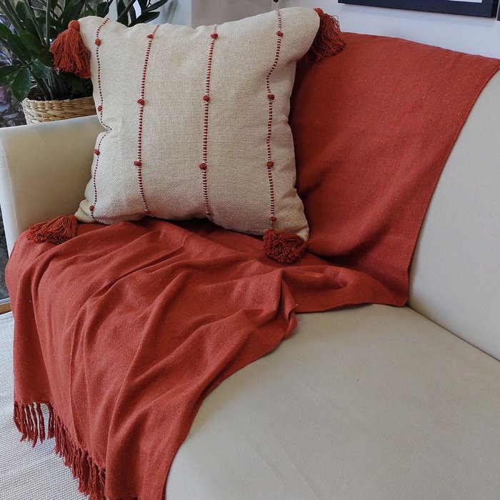 Manta Decorativa Sofá Grande Algodão Terracota 1,80x2,50