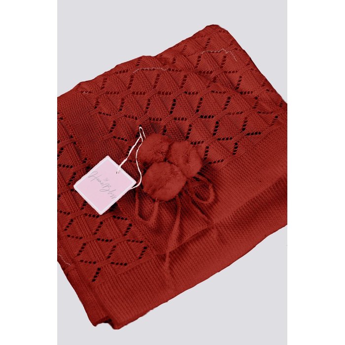 Manta Tricô PombomCarlan Vermelho - Único -