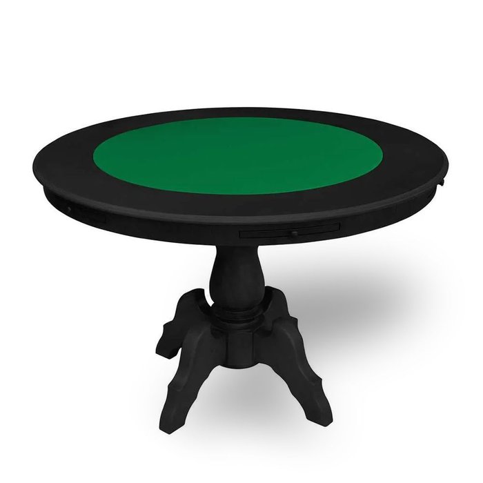 Mesa 6 Lugares Jogos Poker Carteado Montreal Redonda Tampo Reversível com Gavetas e Porta Copos Pret Preto