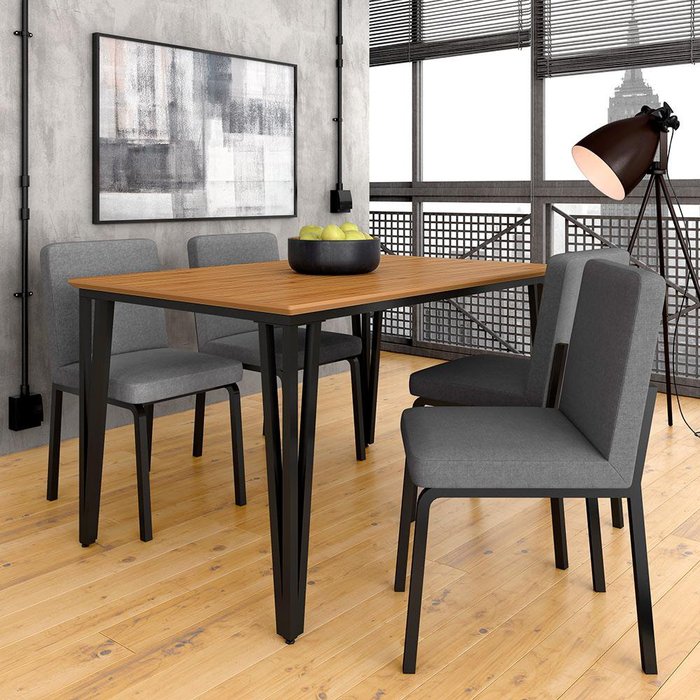 O Conjunto Sala de Jantar Denver com 4 Cadeiras com um design industrial e moderno, perfeito para dar aquele toque convidativo e atraente em seu ambiente!