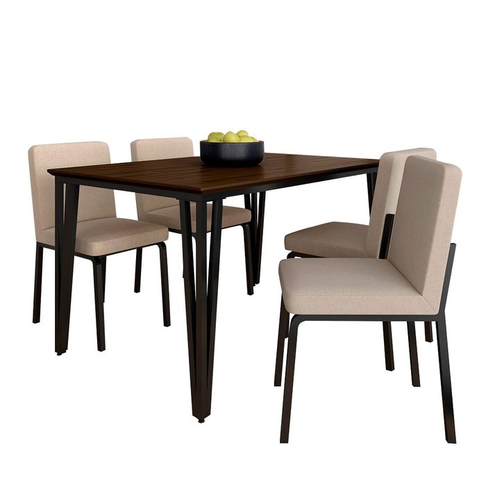 Mesa com 4 Cadeiras Industrial 1,36 Denver Pt/im/bg - Móveis Arapongas Preto Fosco/imb/linho Bege