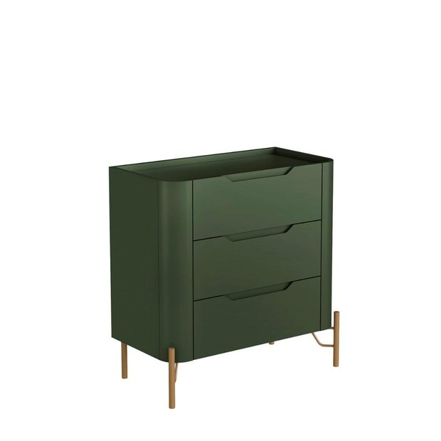 Mesa de Cabeceira com 3 Gavetas 70cm Pés em Metal 100% MDF Musgo/Dourado