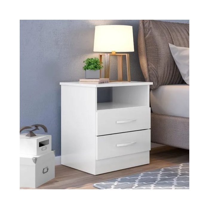 Mesa de Cabeceira com Nicho e 2 Gavetas branco