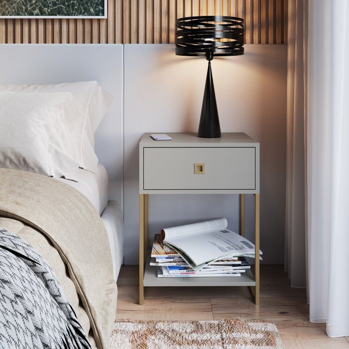 Mesa de Cabeceira Industrial 1 Gaveta P1026 Arena / Dourado