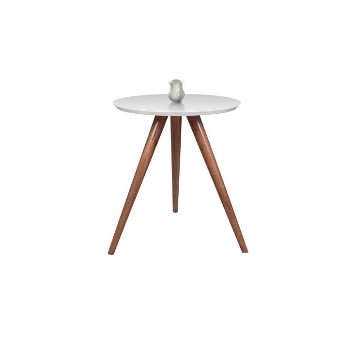 Mesa de apoio de canto lateral branca com vidro pés palitos altura 50 Cm