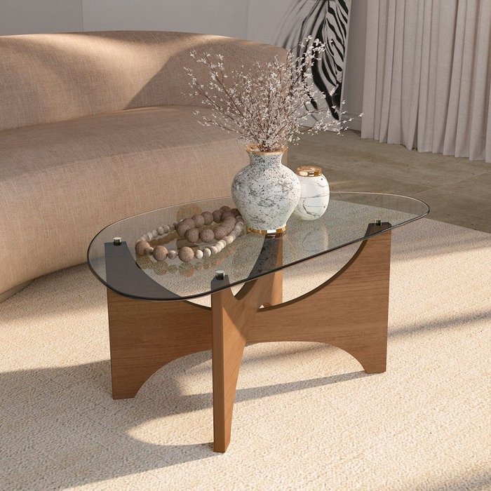 Mesa de Centro Levitá com Vidro 100% Mdf Cinamomo - Artely Móveis Marrom Claro