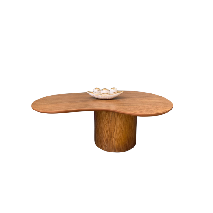 Apresentamos a elegante mesa de centro com base cilindro freijó e tampo orgânico em MDF melamina Freijó com bordas chanfradas, essa peça traz um toque de sofisticação para qualquer ambiente. Sua estrutura sólida e durável oferece suporte confiável, enquanto a beleza natural da madeira freijó adiciona charme e estilo. Essa mesa de centro é perfeita para a sua sala de estar.