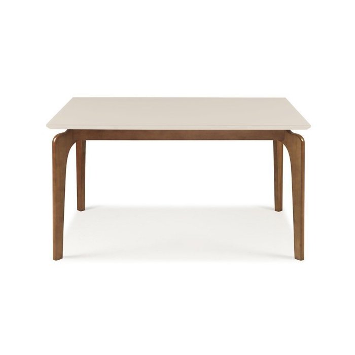 Mesa de Jantar Cirrus sem cadeiras 120cm com Tampo de Vidro e Madeira - Canto quadrado Off White/Imbuia