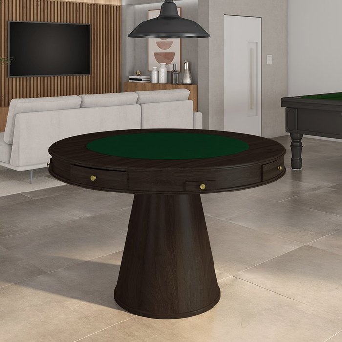 Mesa de Jogos Carteado 4 Lugares Bellagio com Gavetas e Tampo Reversível Base Cone com Tecido Capucc