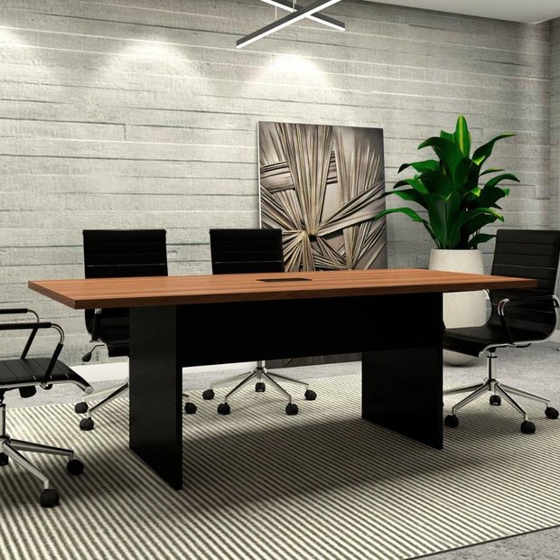Ver imagem 1 de Mesa de Reunião Corporativa 200cm X 90cm C/ Caixa de Tomada Cor:nogal com Preto