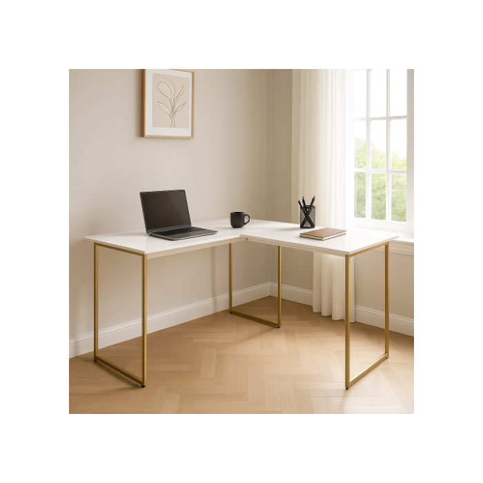 Mesa em L Estilo Industrial Escrivaninha de Canto Escritório Estudo 120x90 Max - Branco/dourado Branco/Dourado
