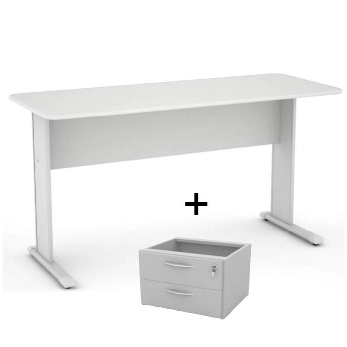 Mesa Escritório 1,52x0,62m com GAVETAS - PANDIN - CINZA/CINZA - 43082 Cinza