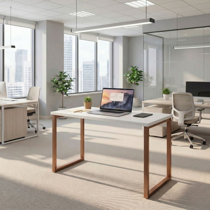 Mesa Escrivaninha Home Ofice Industrial 100% Mdf:branco-cobre Branco-Cobre