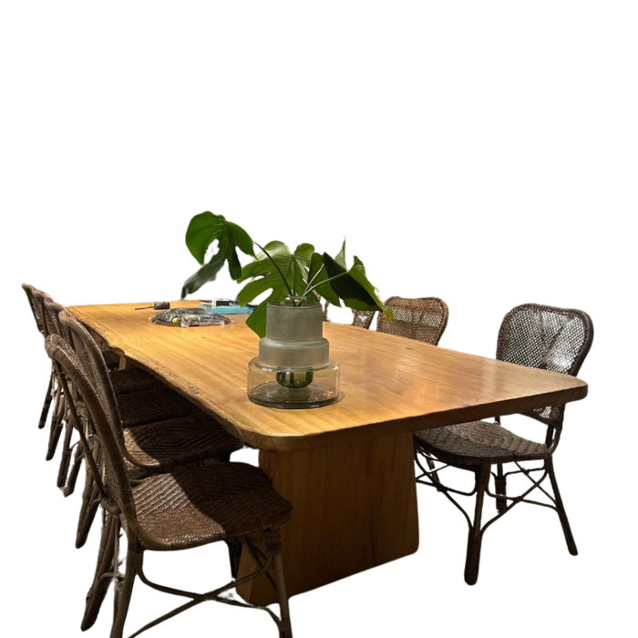 Mesa Jantar 2,00m Madeira Maciça Pequiá Borda Orgânica 8 Lugares Base Ferro Martinez