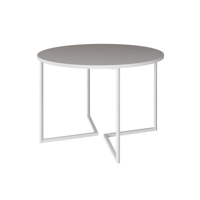 Mesa Jantar Industrial Redonda Branca 110Cm Base V Ferro Branco Cor: Branco