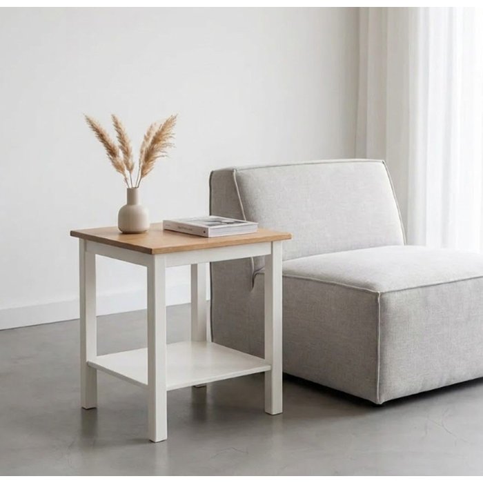Mesa Lateral Madeira Maciça Vanilla Yescasa Amêndoa/Branco