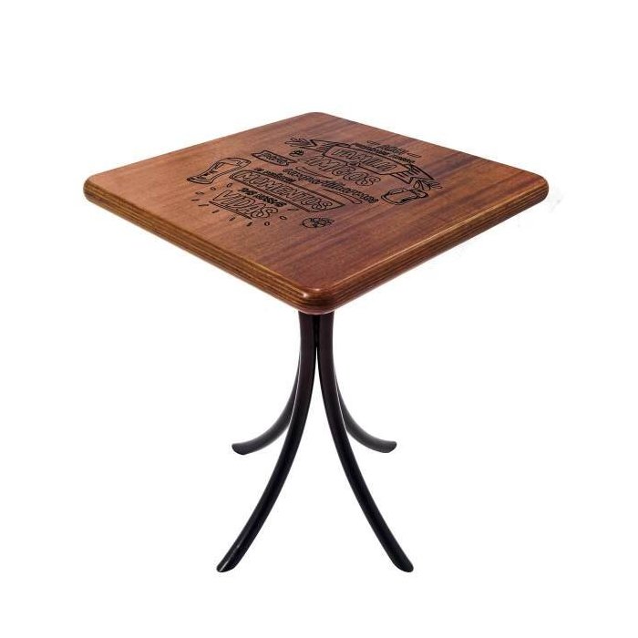 A mesa Tambo não é apenas uma mesa comum, é também uma peça de decoração. O tampo tem 3 possibilidades: todo liso em madeira, com estampa pirografada ou com azulejos incrustados. Escolha uma das estampas prontas da nossa loja. São diversas opções tanto no azulejo, quanto queimada na madeira.