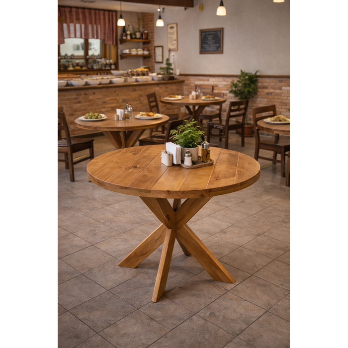 A mesa redonda de 1 metro é a escolha ideal para quem busca charme, funcionalidade e resistência em um só produto. Seu design com base central cruzada garante estabilidade e melhor aproveitamento do espaço, sendo perfeita para salas de jantar compactas, áreas gourmet, varandas cobertas e restaurantes.