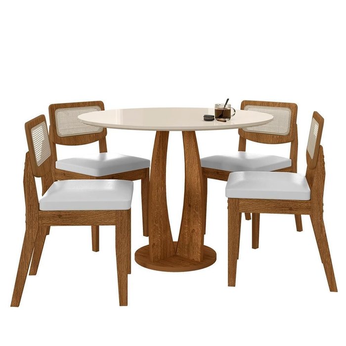 Mesa Redonda Camogli 4 Cadeiras Sextavadas Freijó/off/corino Bco - M.a Freijó/off Premium/corino Off Premium/Branco