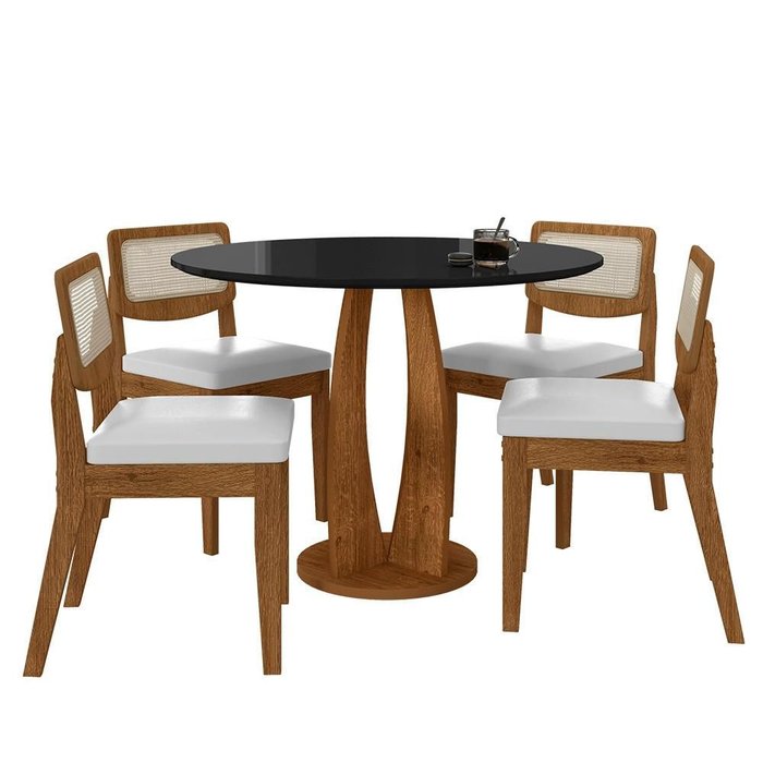 Mesa Redonda Camogli 4 Cadeiras Sextavadas Freijó/pto/corino Bco - M.a Freijó/preto/corino Branco