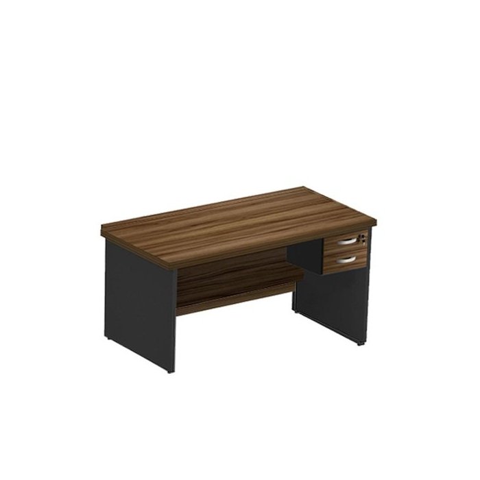 Mesa reta pé painel cor nogal/preto com gavetas 1,50×0,70×0,75 - 1344